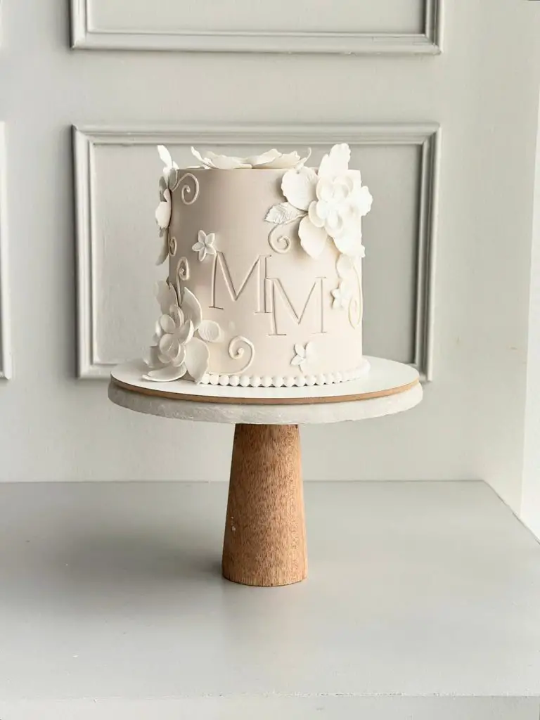 I’m a big fan of using texture instead of loud colors to grab attention. The white-on-white monogram and oversized petals create a boutique look that I find very sophisticated. A high-end anniversary deserves this kind of personal touch, especially when the initials is placed so elegantly in the center.