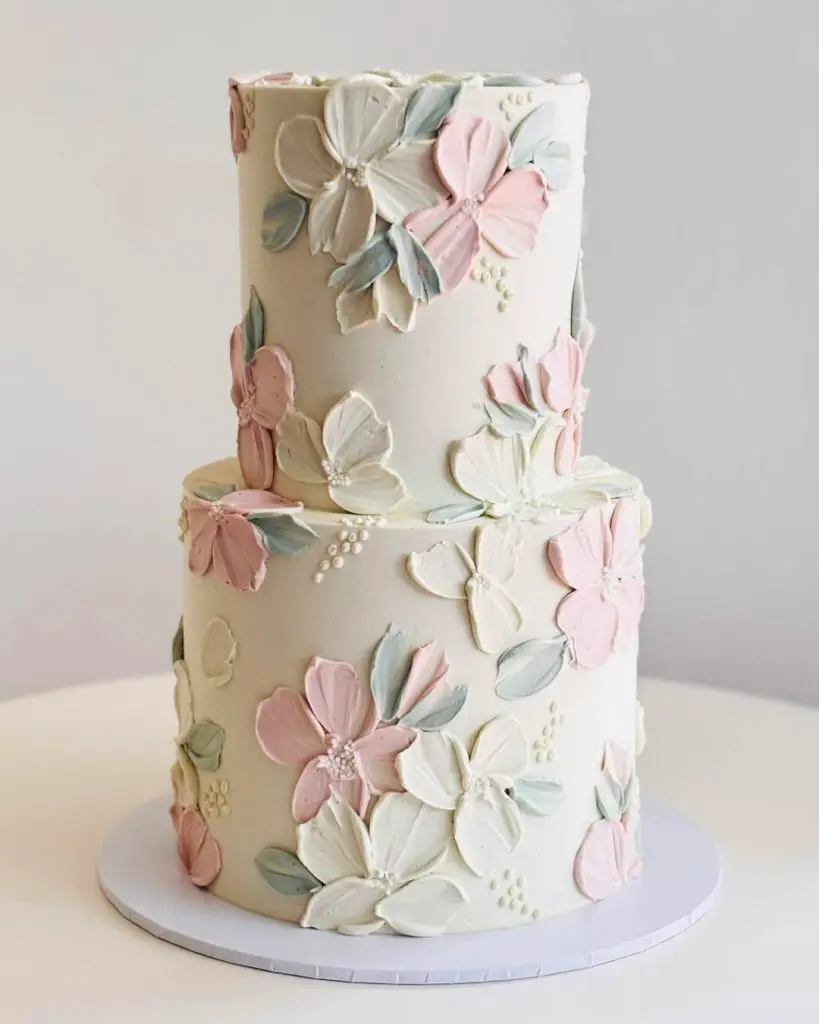I’m obsessed with the “impasto” style here. It feels like a piece of high-end art. Thick strokes of pastel frosting are used to create a tactile quality that I just can’t get enough of lately. You’ll find that these colors were mixed to create a very soothing, trendy vibe for any celebration.