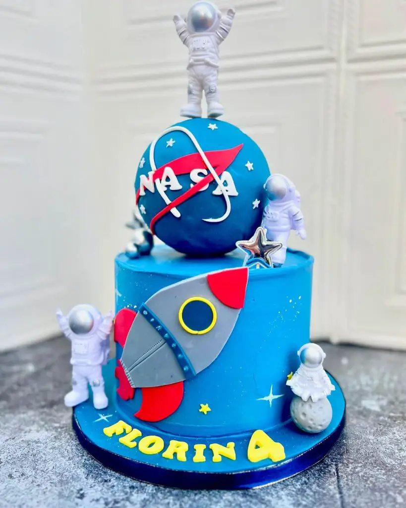 This cake leans into imagination. Astronauts were placed, rockets added, and a whole story appears.
