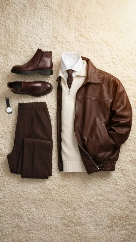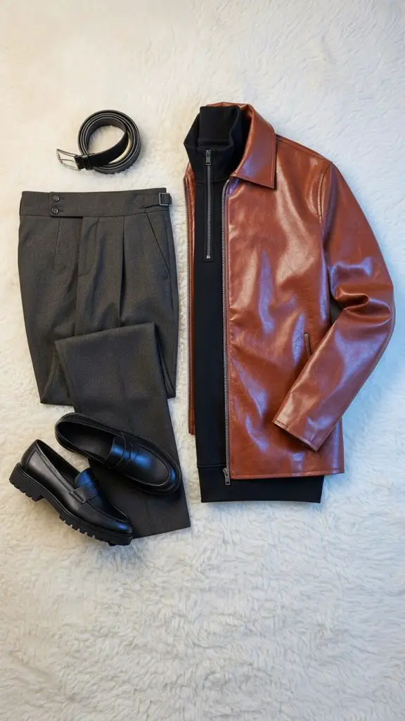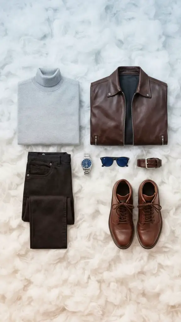- Texture Mashup: Don’t be afraid to wear leather with soft wool or rough denim.