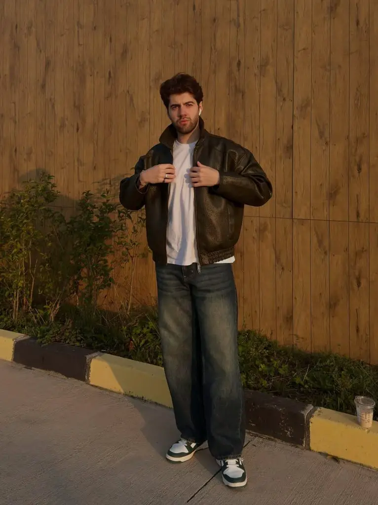 This is the look you go for when you want to look good but act like you didn’t even check the mirror. The white tee against the dark denim creates a contrast that is just universally solid. Its hard to mess this one up, honestly.
