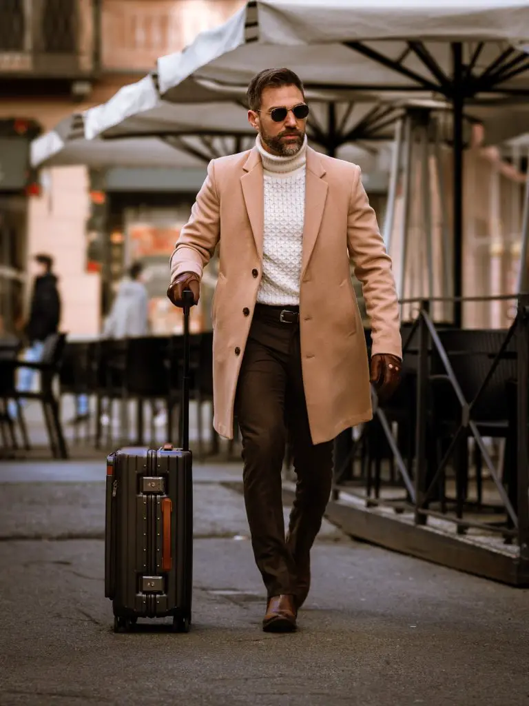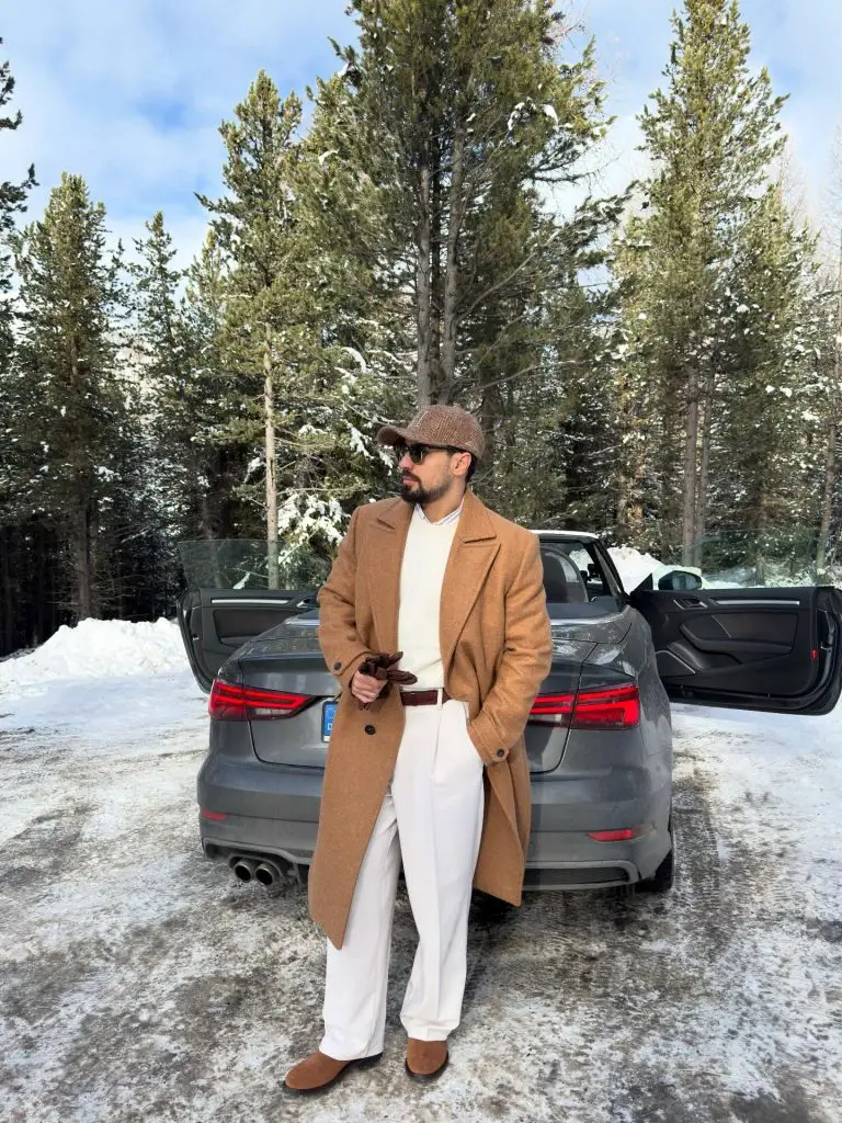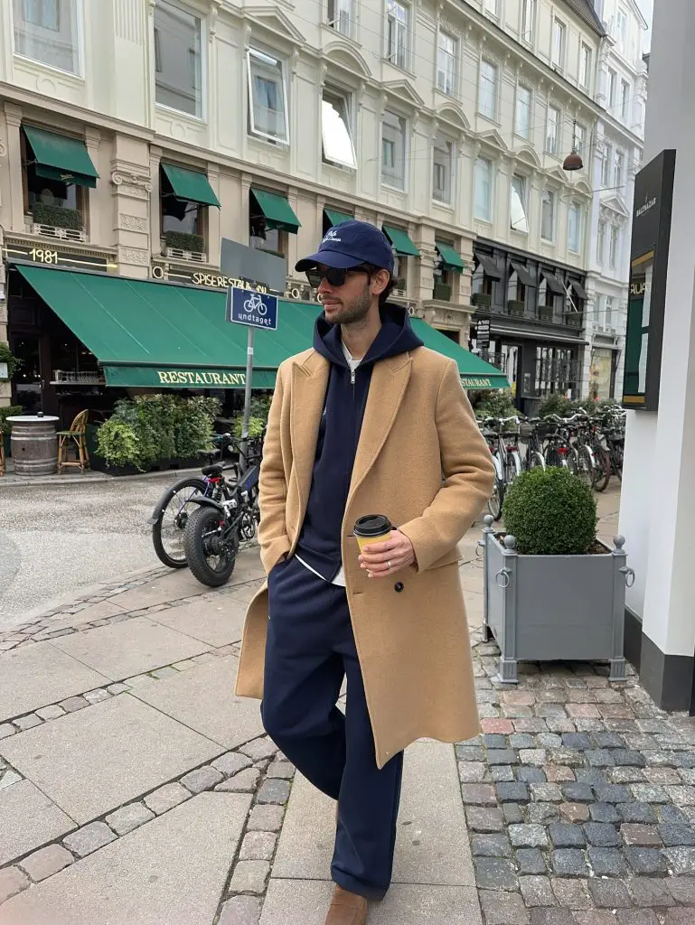 Camel coats have a way of correcting everything. This outfit balances darker layers with warmth on top, and somehow it ends up looking cleaner than expected.