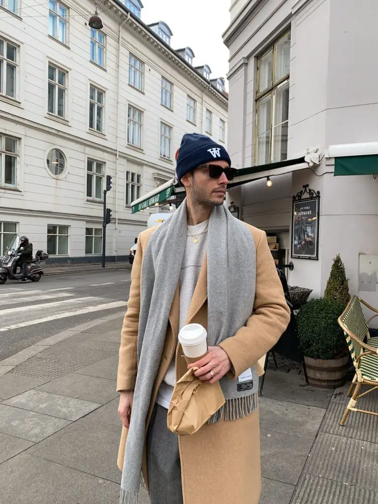 This one feels lived-in, not styled to death. The scarf softens the structure of the coat, and the overall look feels human, warm, and wearable.