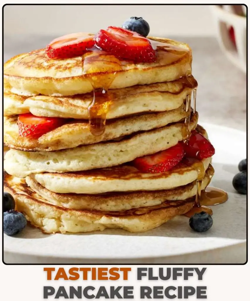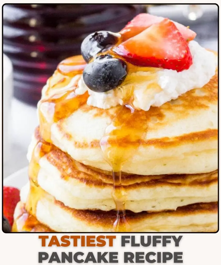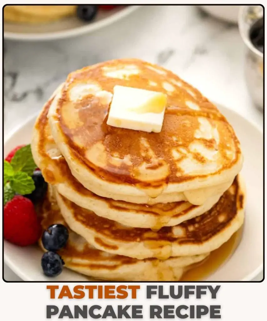 The height of these pancakes is truly impressive. A combination of leavening agents is utilized to ensure a great rise. You should pick this if you want your breakfast to look like a professional photo. It tastes amazing too.