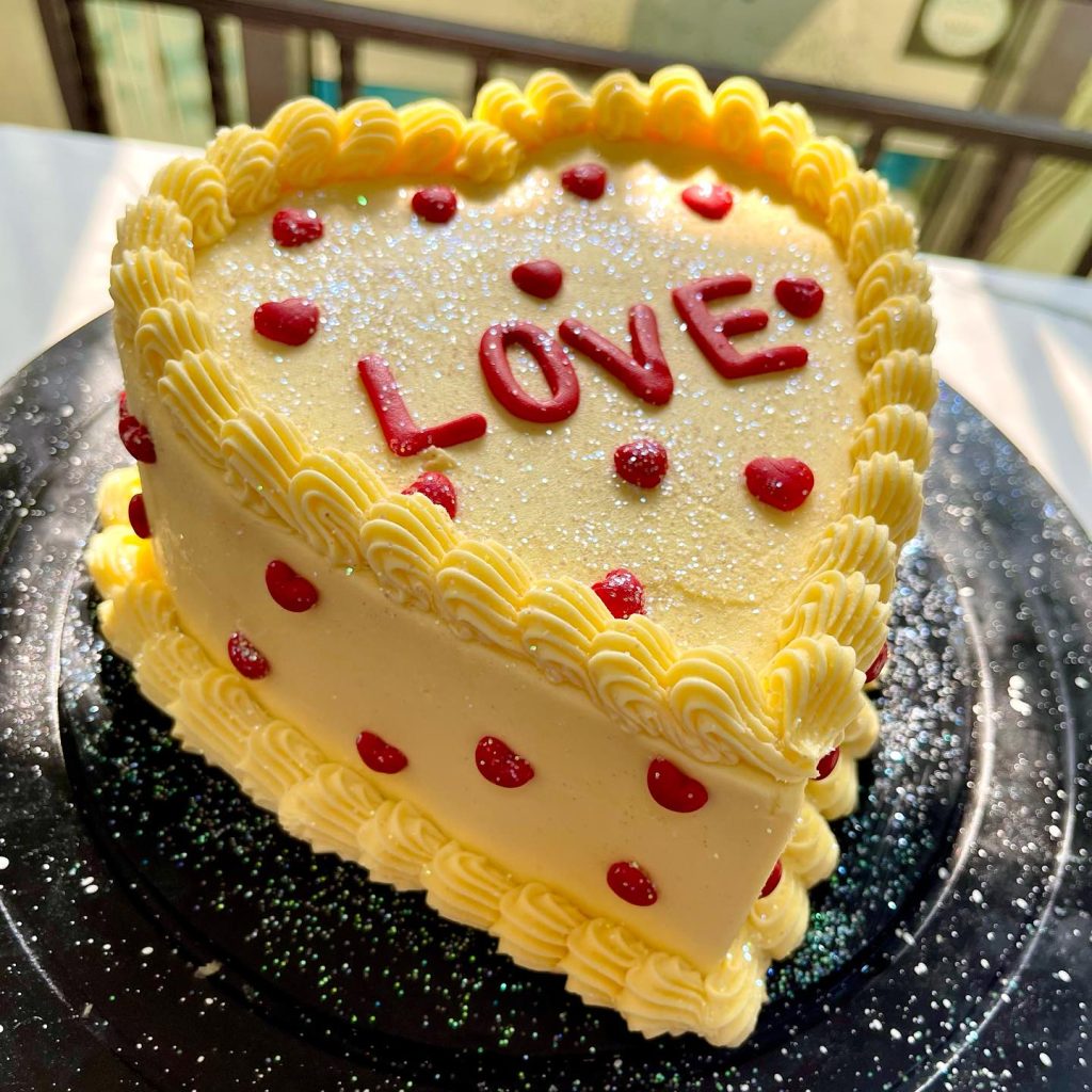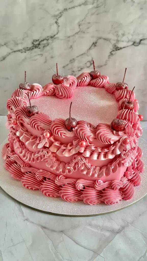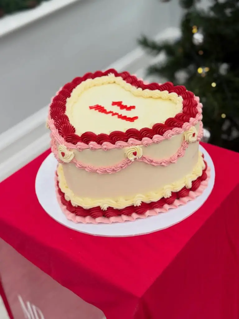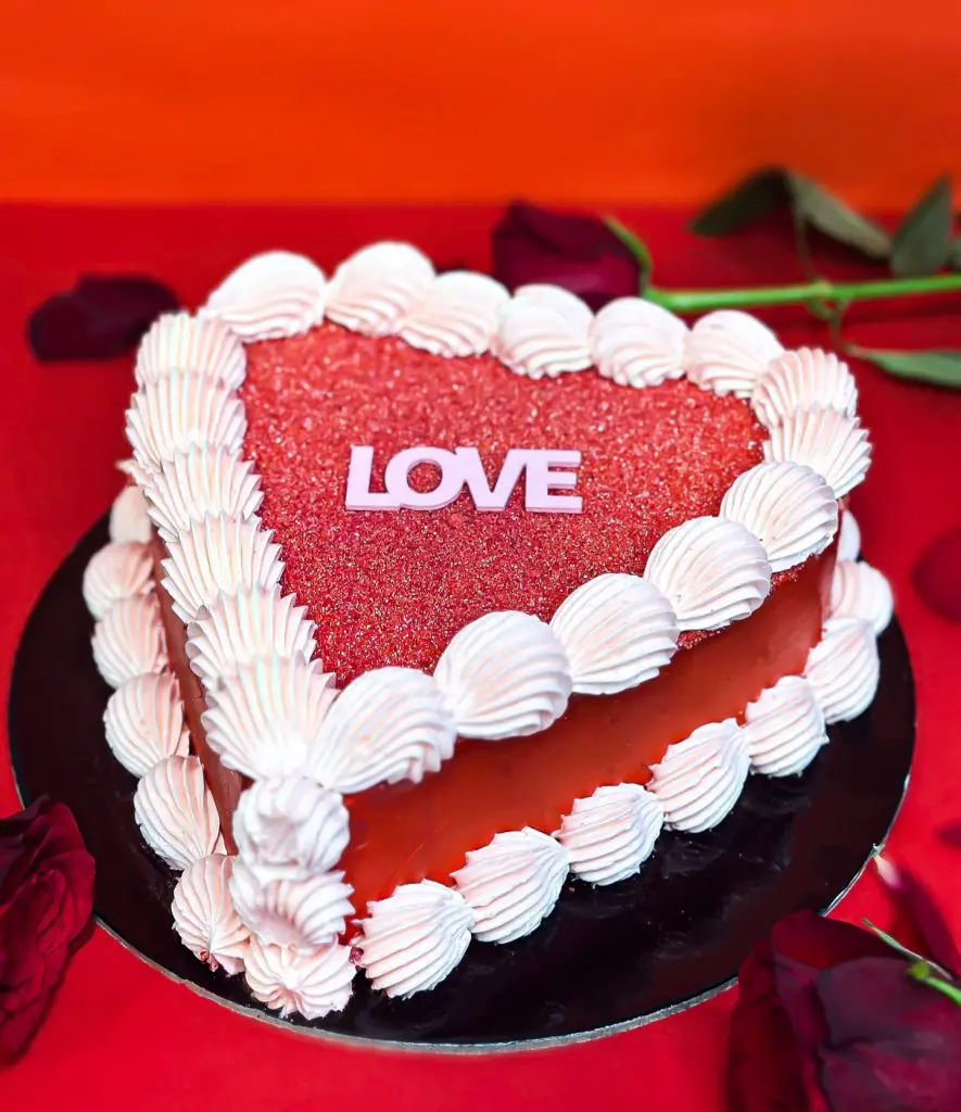 Every inch is covered here, and nothing feels accidental. The rosettes were clearly planned, yet the softness keeps it friendly. It’s bold, but not shouting, which isn’t easy to pull off in a heart cake design.