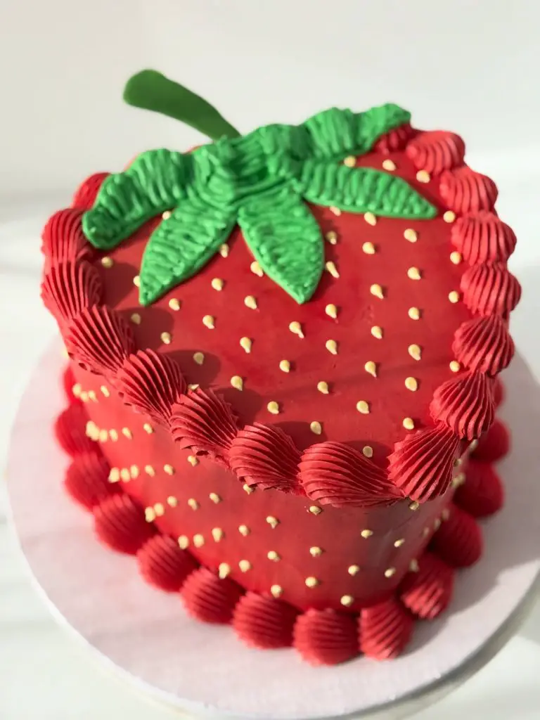 This cake feels calm and deliberate. The berries sit confidently on top, while the cream base stays quiet underneath. It looks composed, though the texture keeps it from feeling stiff.
